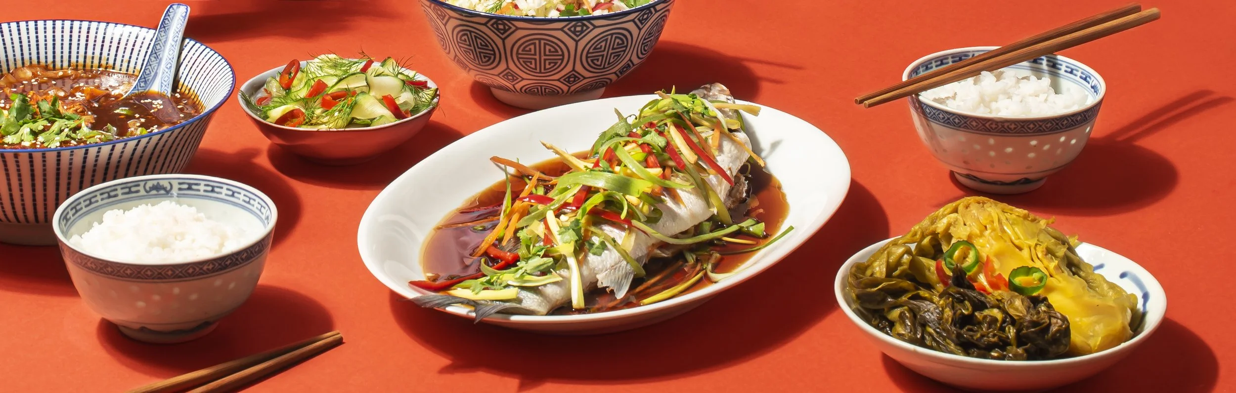 - Fish: Often steamed and served whole, fish signifies abundance. The phrase “may you have surplus every year” sounds like the word for fish in Chinese.